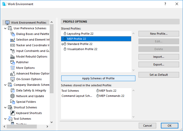 From the Profile Options, choose MEP Profile 22 and click on Apply Schemes of Profile button. For further information, consult the MEP FAQ. The MEP Modeller plugin can be tested with all Archicad license types: commercial, demo, trial and educational. Demo licenses have the limitation of not being able to save and copy work.
