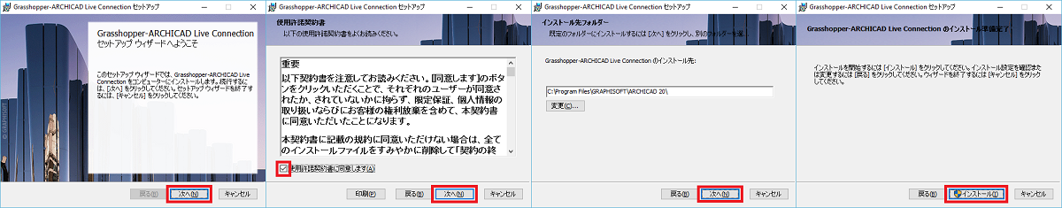 Grasshopper-Archicad Live Connectionの設定ウィザードを起動するには、アドオンの.MSIファイルをダブルクリックして、設定画面に表示される指示に従い操作してください。