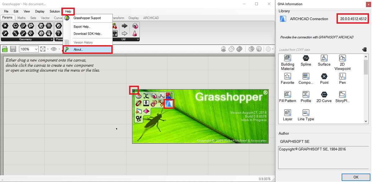 最新のバージョンに更新した後、更新が成功したことを確認するために、ArchicadとGrasshopperの両方に示されているバージョン番号を確認することをお勧めします: