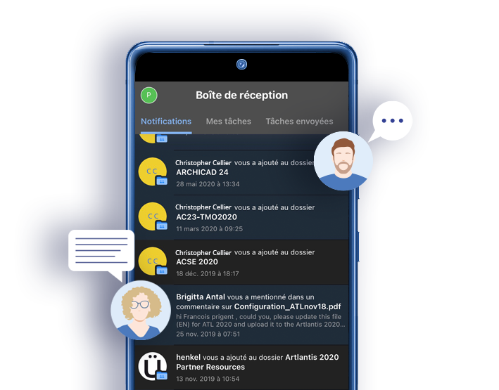 Connectez-vous pour partager vos fichiers textes, images, plans… où que vous soyez. Un large choix d’applications mobiles IOS et Android est disponible en libre téléchargement.