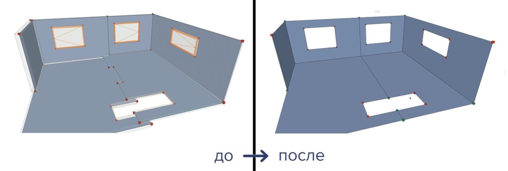 - Точное формирование ведомостей и спецификаций благодаря использованию проемов нестандартной формы с применением многоугольных Отверстий.