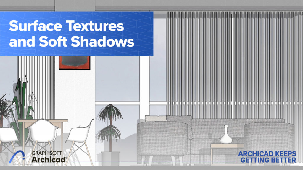 Comunique o seu design com detalhes realistas. Exiba suas texturas de superfície diretamente em vistas de Corte e Elevação no Archicad sem o uso de software de edição adicional.