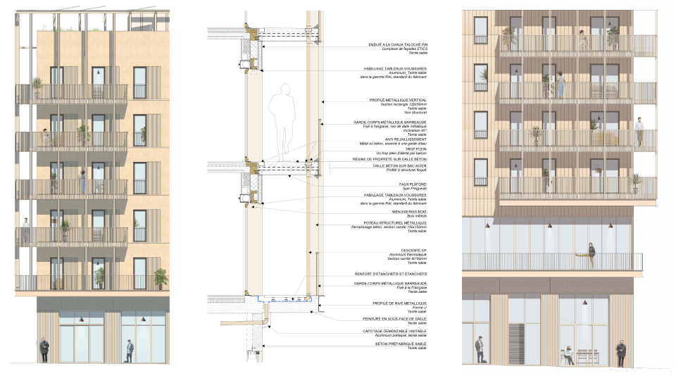 The use of timber in the buildings helps to achieve this low carbon rating, but the team also used innovative materials and combinations of materials for the design, working with the Scientific and Technical Building Center (CSTB) of France and product manufacturers to achieve the lowest carbon option.