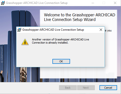 - Please note that the Connection Add-on cannot be installed for more than one Archicad versions at a time. If you already have one (e.g. a previous version), you must uninstall it before proceeding. If one of them is already installed you will get the following message when trying to install one more: