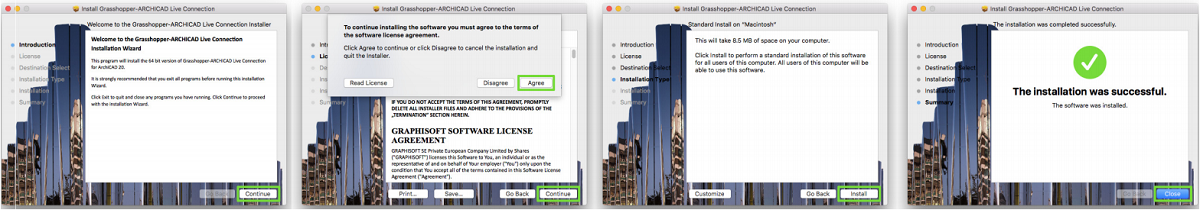 The downloaded installer will install two extensions at once: an Archicad add-on and a Grasshopper plug-in. (These two will communicate creating the connection between the two design software.)