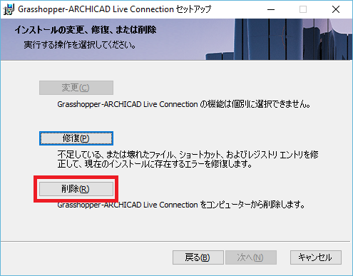 Grasshopper-Archicad Live Connectionのアンインストールは2つの方法があります: