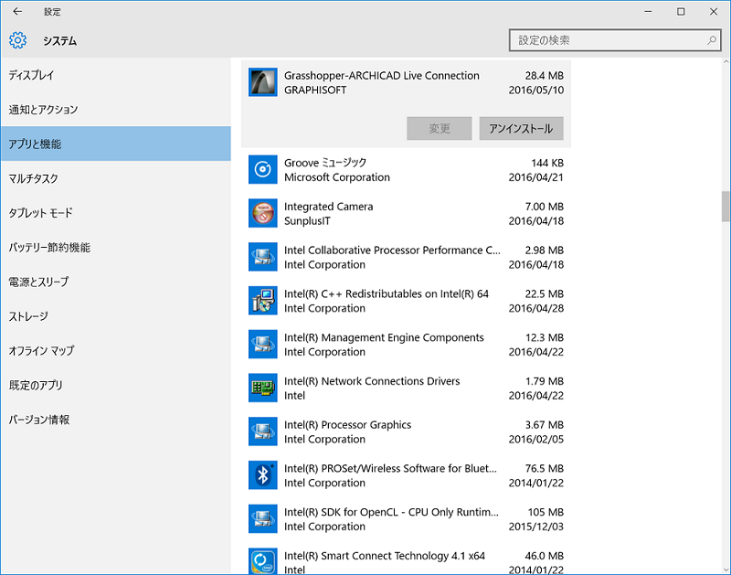 - コントロールパネルのアプリと機能からGrasshopper-Archicad Live Connectionを選択し、アンインストールをクリックしてください。