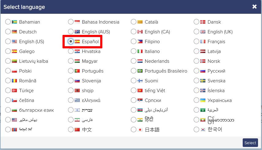 - Una vez allí, si lo deseas puedes cambiar tu idioma preferido en la parte inferior de la página.