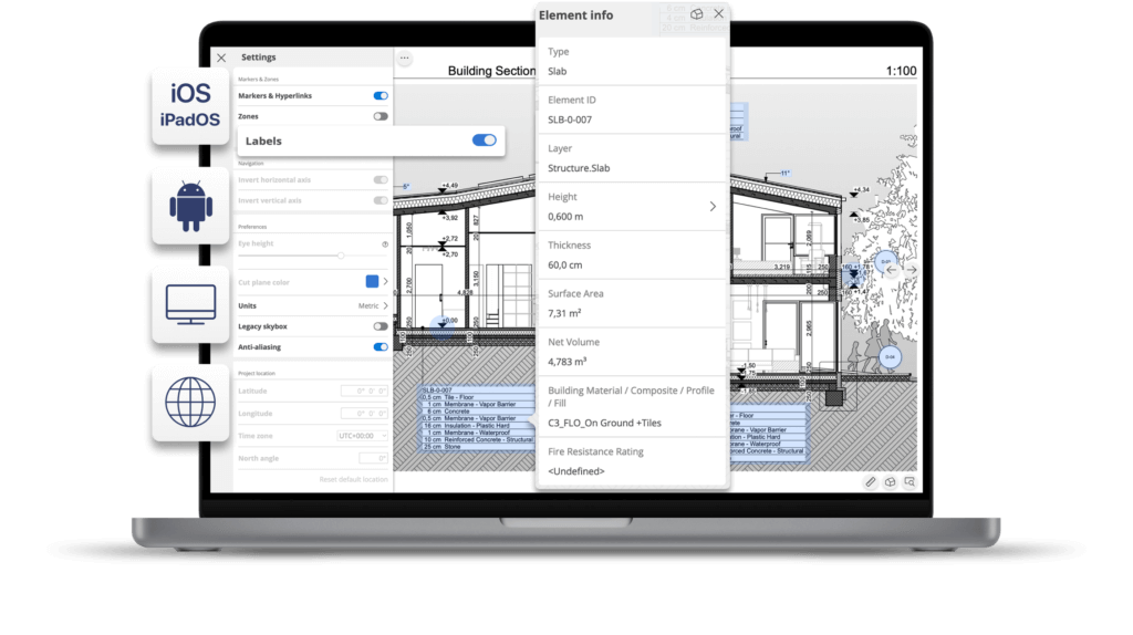 隨時隨地訪問建築設計元素的準確規格,無需在佈圖和 3D 視圖之間來回切換,便可從 2D 佈圖輕鬆存取 3D 元素信息。關聯標籤亦可讓你輕鬆取得最需要的信息。