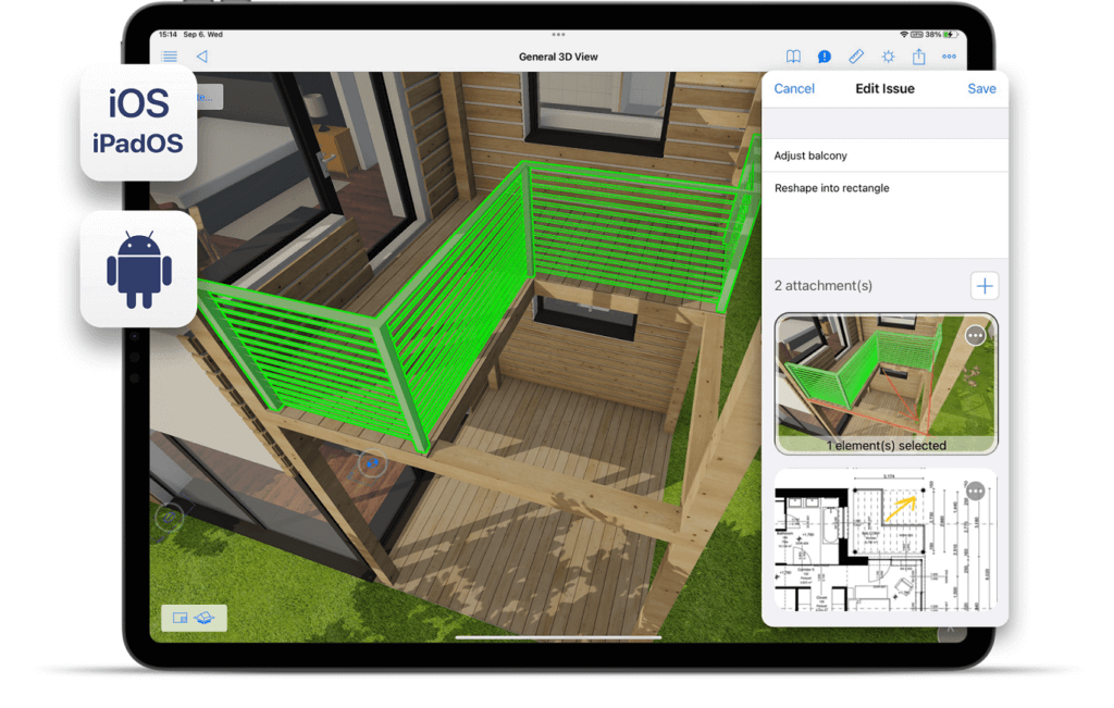 使用 BIMx Issues 在現場訪問時或場外會議期間標記任何 2D 或 3D 視圖。問題(Issues)符合 BCF 標準,因此它們在整個設計過程中均可追蹤。