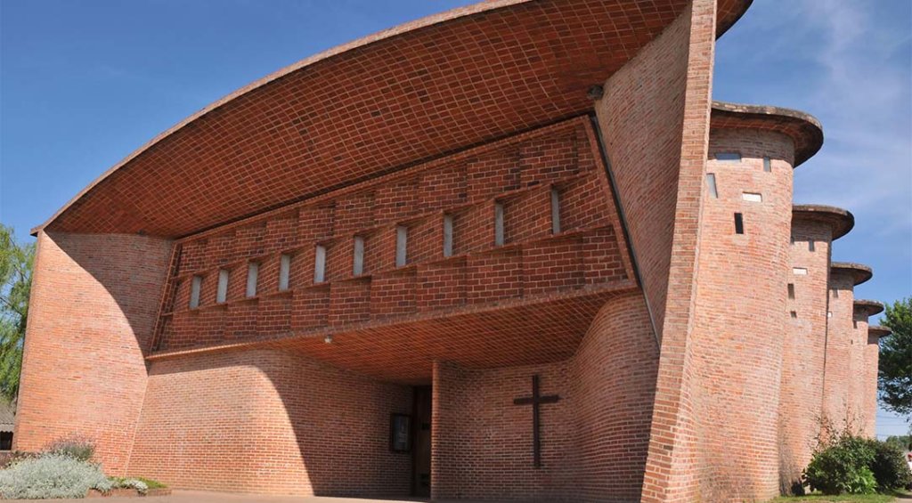 La parroquia católica integra un conjunto de más de 150 edificios construidos por la empresa fundada en 1954 por el ingeniero Eladio Dieste (1917-2000) y su colega Eugenio Montañez, con sede en Montevideo.