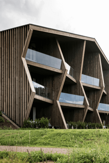 A környezetet tükröző, visszafogott és finom színpalettát használva a látogatók úgy érzik, eggyé váltak a természettel az alpesi rétek és erdők között.