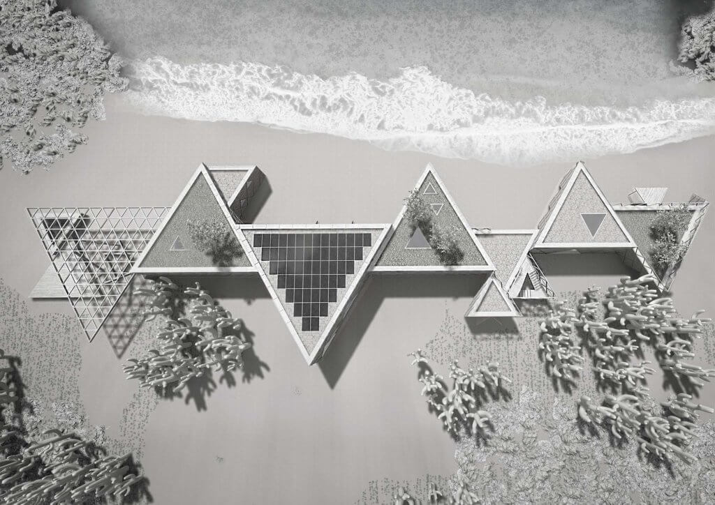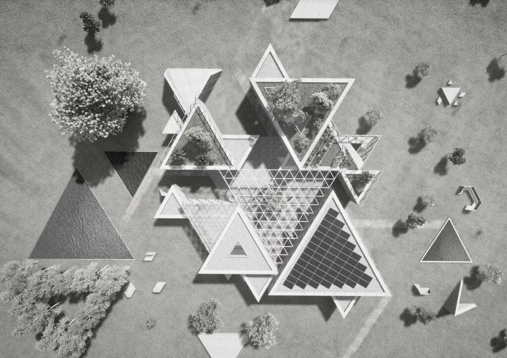 Az Archicad Design Options funkciójának használatával a háromszög alakú modellek végig ismétlődnek, és különböző konfigurációkat hozhatnak létre rögzített szabályokon belül. A teret a helyi közösségek sokféle igényének kielégítésére lehetne használni, a játszóterektől kezdve a koncerttermekig vagy kiállításokig.
