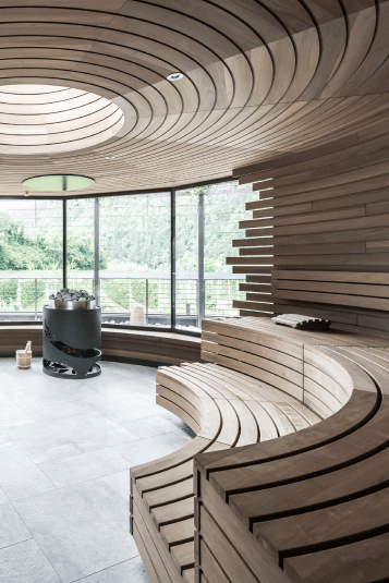Miután a NOA korábban már tervezett egy konzolos úszómedencét a Hubertus hegyi szállodának, a NOA-t bízták meg három kis medence és szauna kialakításával egy új wellness-bővítmény számára.