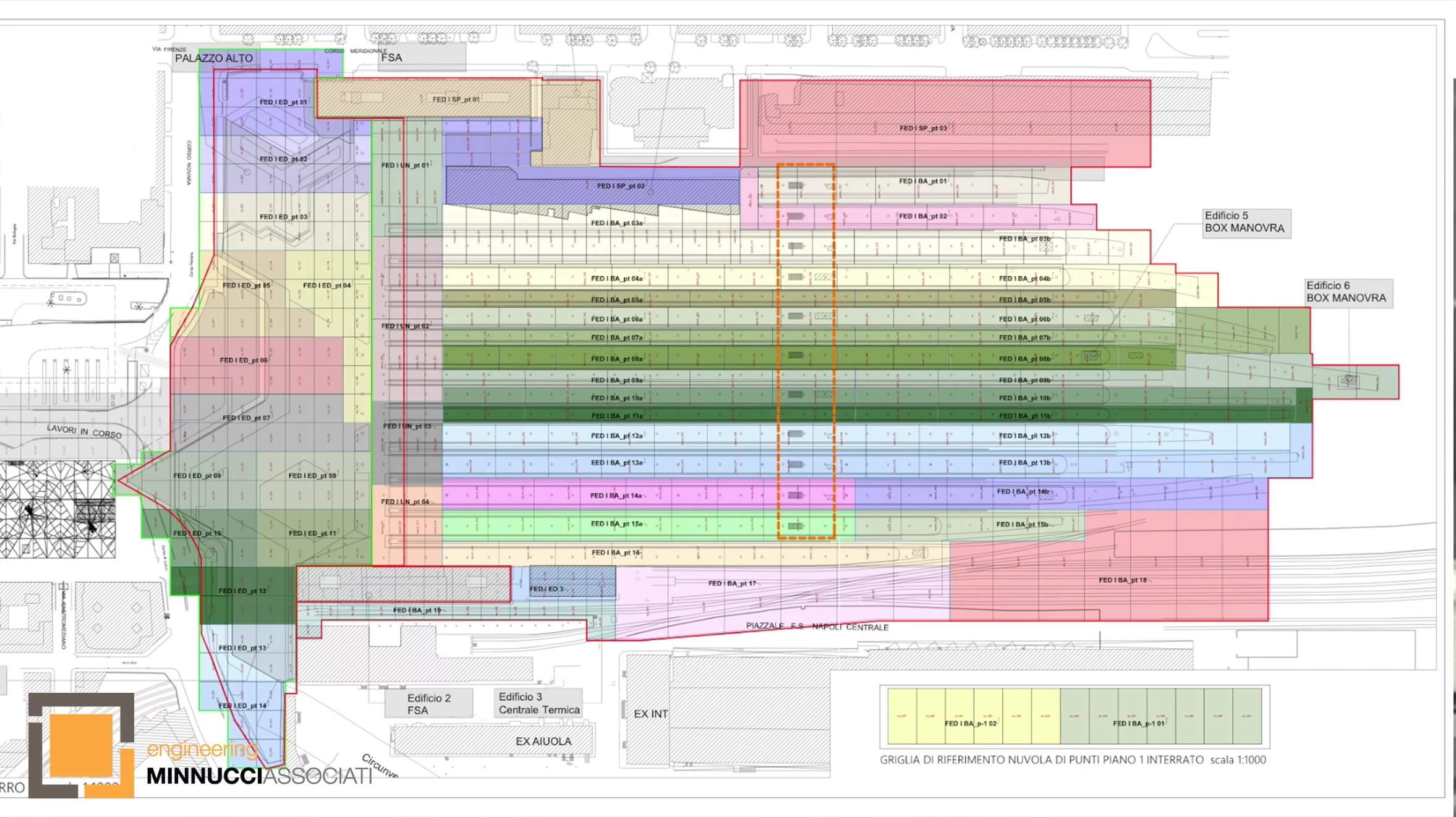 我們的目標是為佔地40萬平方米的那不勒斯中央車站創建數字雙生模型,其中有12,500多個元素需要維護。我們的挑戰是模型十分巨大。Graphisoft BIMcloud為我們提供了幫助,讓我們能夠將調查的數據和完成的模型劃分為聯合檔案,然後在Archicad或使用導出的IFC模型將檔案重新合併。