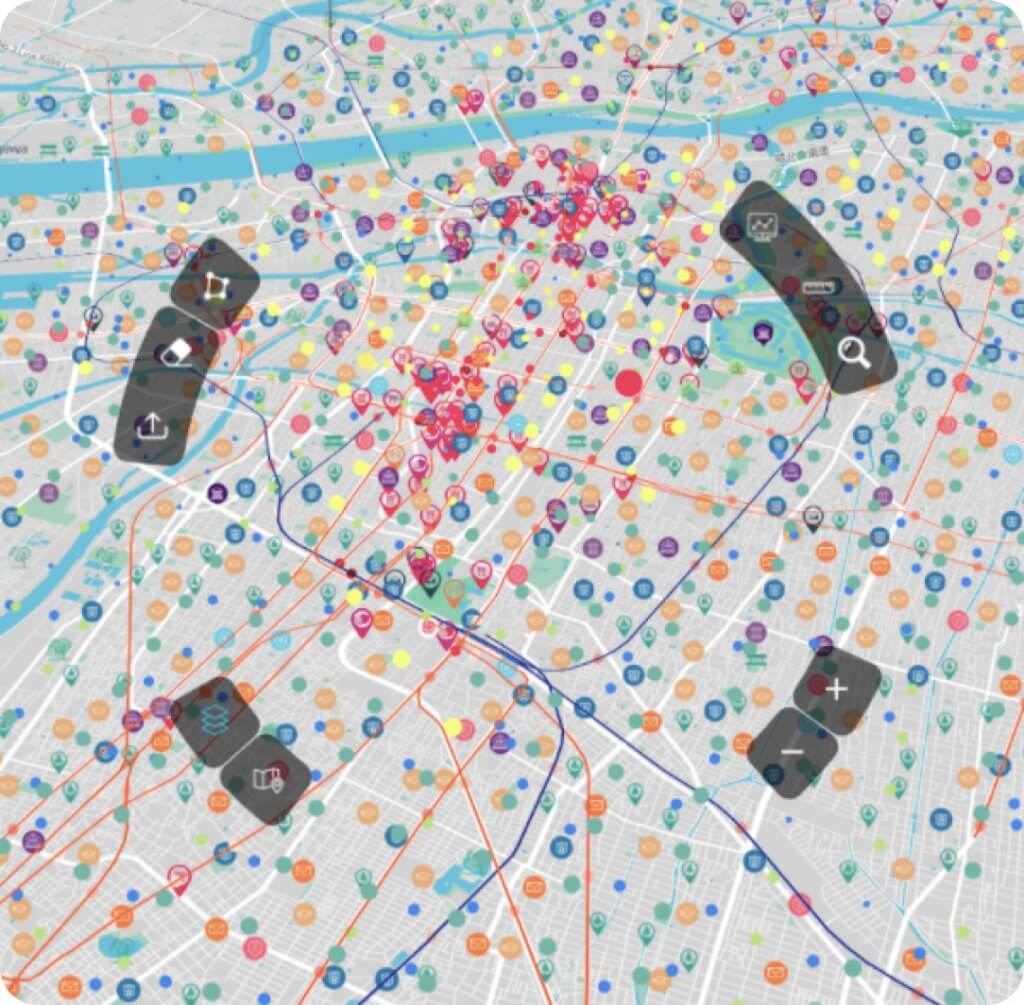 DBF Urban Insights helps you mining location-based data from a variety of online sources: social media, maps, weather stations, and much more. The system processes and visualizes the collected data, and computes an overall neighbourhood score. The platform also suggests baseline criteria for a new development, such as the ideal size, tenancy, and typology. The metrics developed were informed by a variety of academic studies.