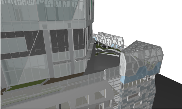 Far East Consortium también quiso explorar opciones para activar la zona exterior del hotel y las entradas a los apartamentos. Los arquitectos diseñaron un “pocket park” o pequeño parque, que presentaron utilizando un rendering de realidad virtual creado desde el modelo de Archicad.
