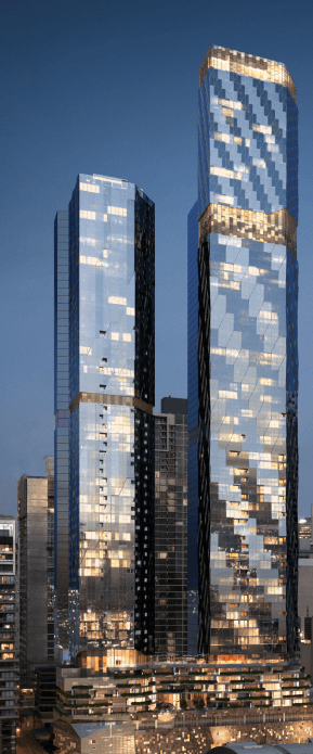 Las cuatro relucientes torres del West Side Place llevan el lujo de vida de los rascacielos al corazón de Melbourne. Combinado con casi 3.000 apartamentos de uno, dos y tres dormitorios de atractivo diseño, con el hotel de cinco estrellas Ritz-Calton y el hotel de cuatro estrellas Dorsett, el emblemático complejo ofrece vistas panorámicas de los muelles de Melbourne y alrededores.