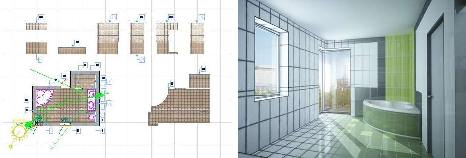 Wall and floor tiling application for Archicad that uses Archicad Accessories Add-on to tile floors and walls.