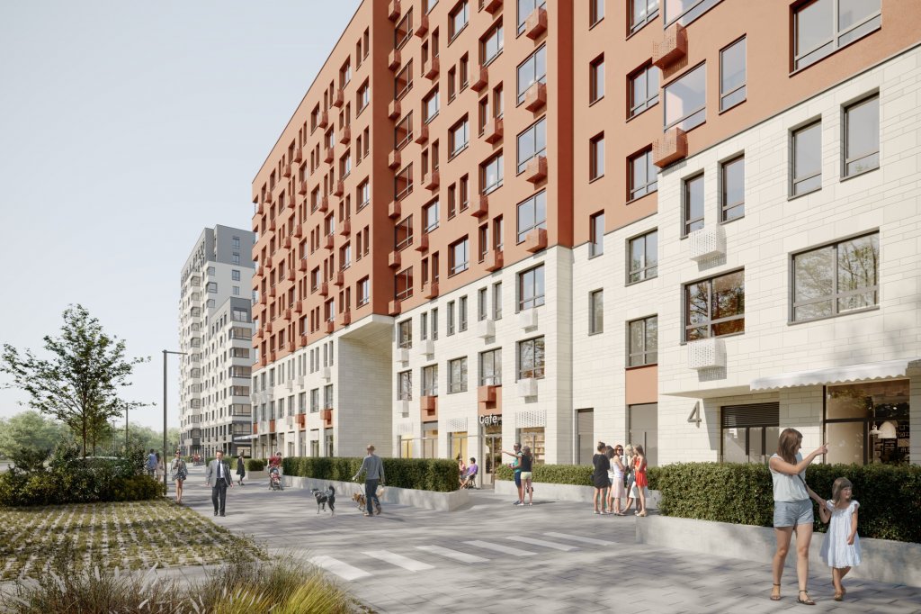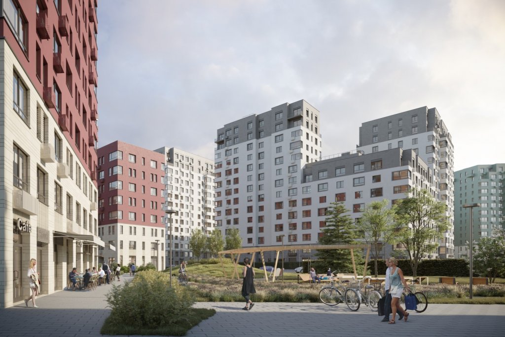 Для каждой секции были разработаны оригинальные фасадные и цветовые решения, поддерживающие единый стиль комплекса и при этом задающие собственный характер каждому кварталу. На том же этапе была сформирована квартирография, определено точное количество квартир, общая жилая и коммерческая площадь.