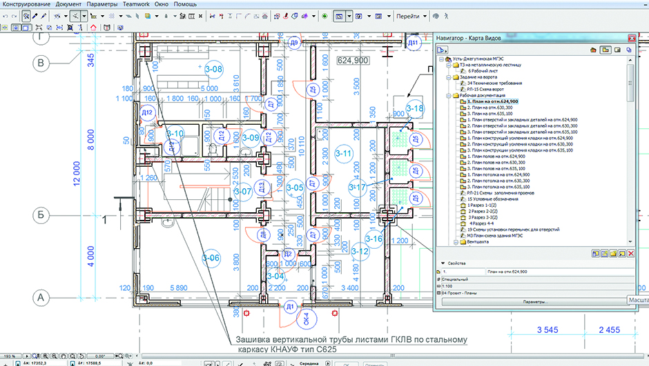 Архитектурные чертежи для рабочей документации включают различные планы этажа: кладочный план, планы отверстий, полов, потолка, конструкций усиления клади и др. Используя карту видов Archicad, архитектор создает все планы из одной модели, а не чертит их отдельно. И снова мы получаем сокращение времени на работу и внесение изменений в рабочую документацию.
