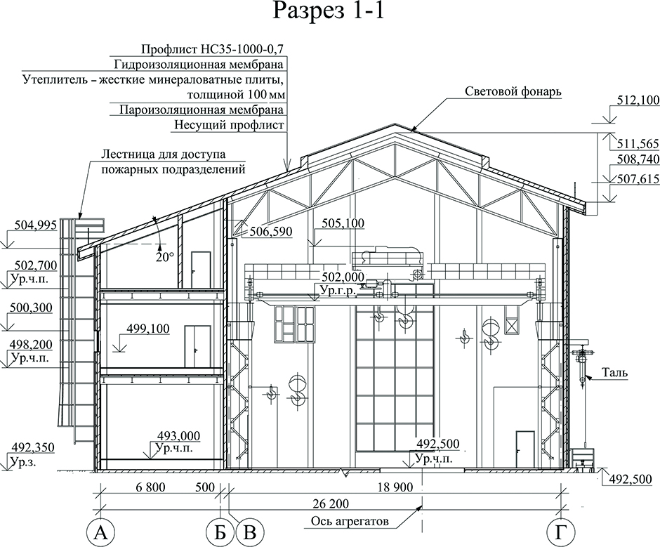 - технические, административные и бытовые помещения компонуются на небольшом участке застройки;