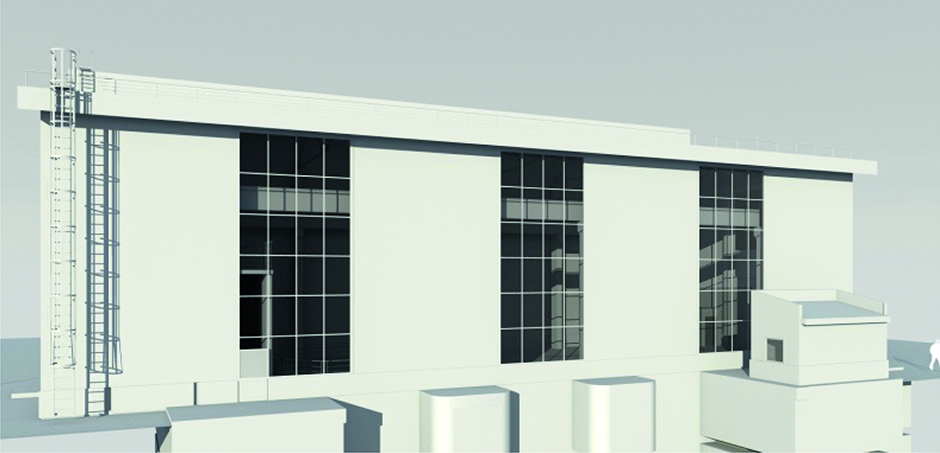 Изначально предполагалось строительство здания из металлокаркаса с использованием навесных сборных железобетонных панелей, которые облицовываются плиткой и утепляются по системе навесного вентилируемого фасада (подобным образом было построено аналогичное здание МГЭС Кашхатау, введенное в эксплуатацию в 2010 году).