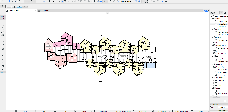 Инструменты ПО позволяют проектировать помещения любых назначений, поэтому вся работа над жилыми, оздоровительными, общественными, административными и медицинскими объектами велась в среде Archicad.