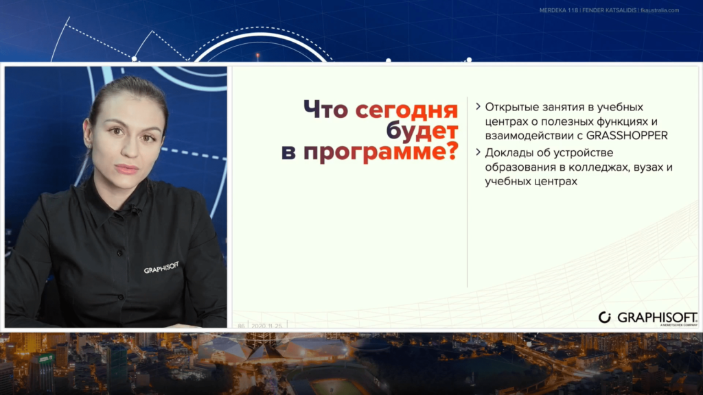 Программу второго дня с обзором всех текущих образовательных программ GRAPHISOFT открыла Мария Калашникова. Следом Дарья Верлен рассказала об опыте внедрения BIM в образовательную программу Калининградского Бизнес-колледжа, а Александр Воробей из Брестского государственного технического университета об оптимизации рабочих процессов при помощи связки Archiсad и Grasshopper.