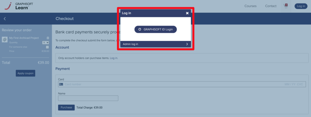 - Нажмите на кнопку «GRAPHISOFT ID Login» (выделено красным)