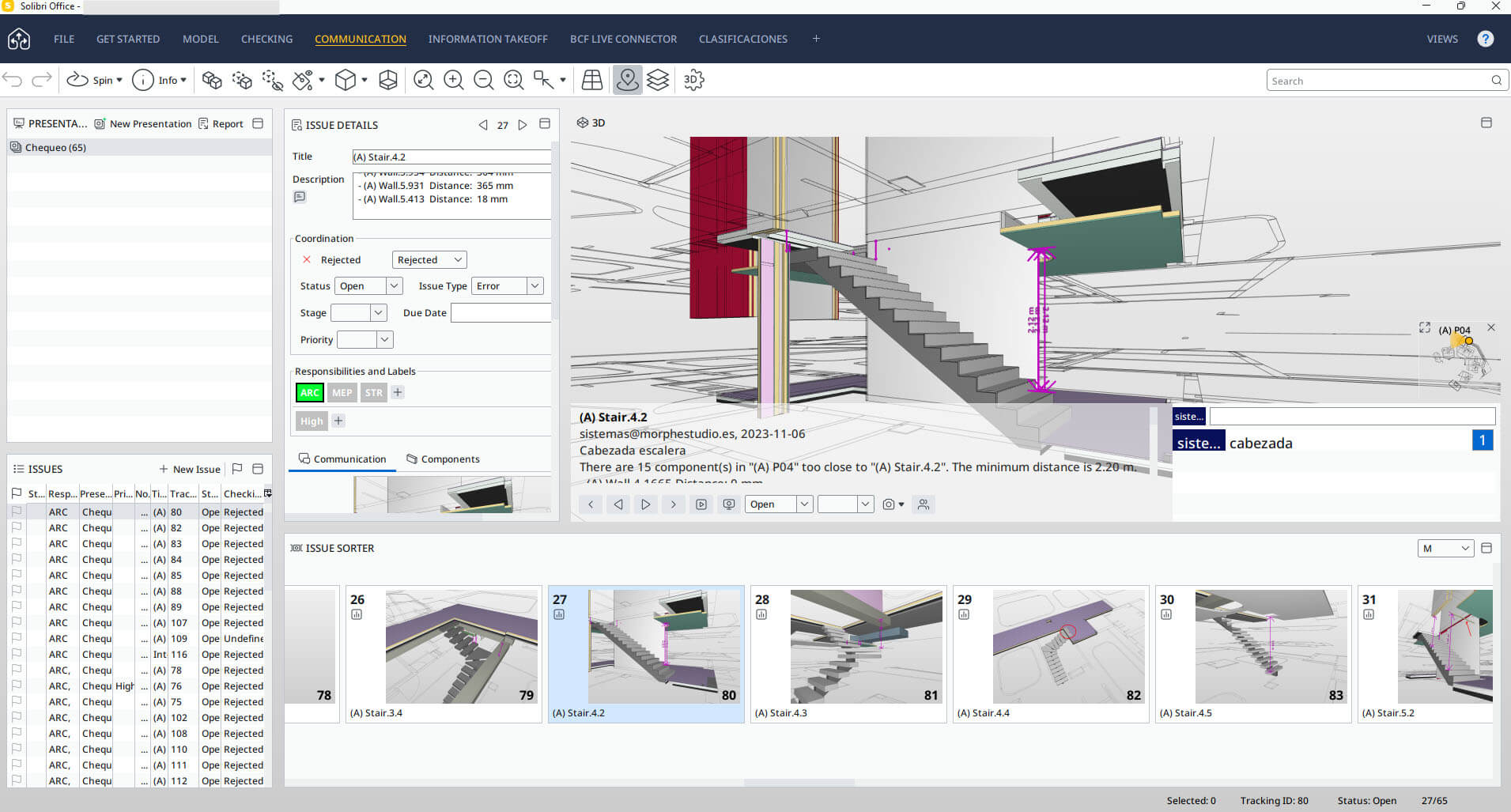 Coordination with other disciplines is a must. We use Solibri to check requirements about information and to coordinate between disciplines. This helps to avoid problems in the construction phase. Meanwhile, the issue manager inside Archicad is an easy way to manage all the issues detected.