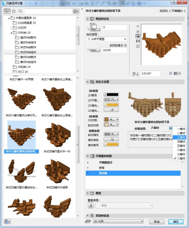 有了Archicad,我們創建了15類古建圖庫,包括石材、瓦、大木作、門、窗等常用元素。