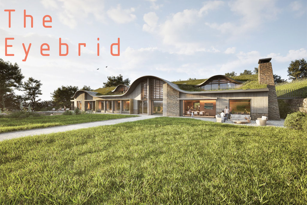 The Eyebrid project reflects the local farming landscape, with a wildflower roof that joins with the meadow around the house.