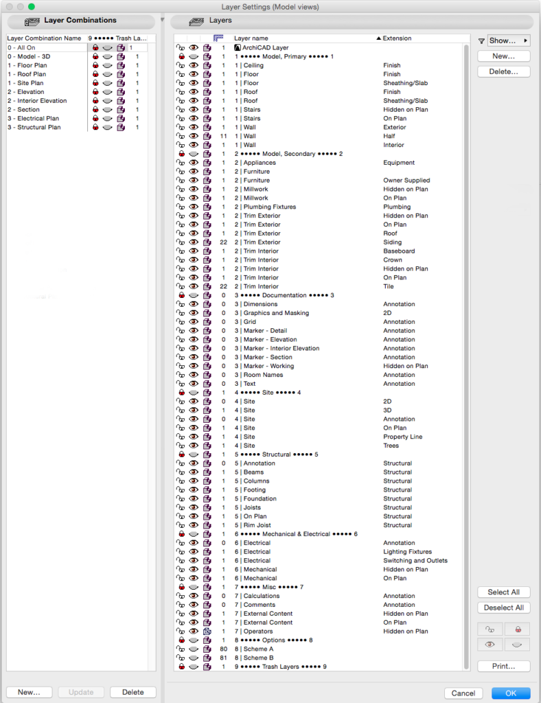 The big revelation Geoff shared during our Archicad user group in Seattle was that he misuses Layer names to add a more complex and functional ordering system for Layers. This solution is so much better than simple alphabetical order. I’d already implemented a similar system for Pen Sets (see Part 8), Layer Combinations, and Renovation Filters, but for some reason I was too timid to apply this logic to Layers themselves.