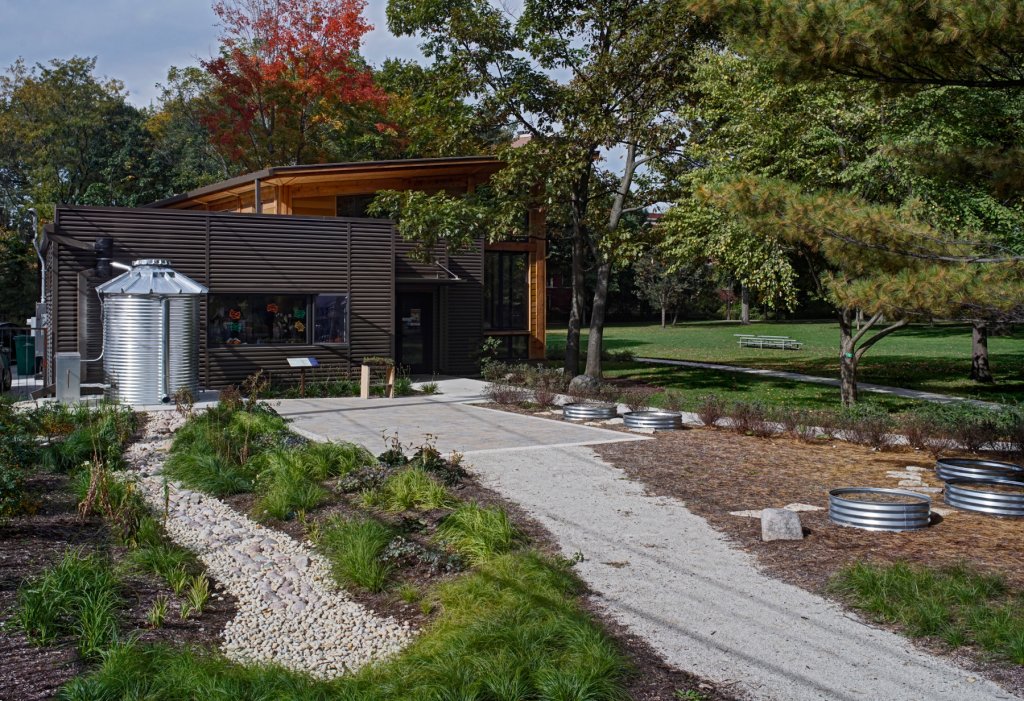 The wooded park gives visitors a stunning view of the original oak savannah in the area and the building is intended to make better use of the natural environment by extending park district programming. There will be an Eco-Ranger camp and nature-based preschool which uses an adjacent vegetable garden to inspire the children and teach them about where food comes from.