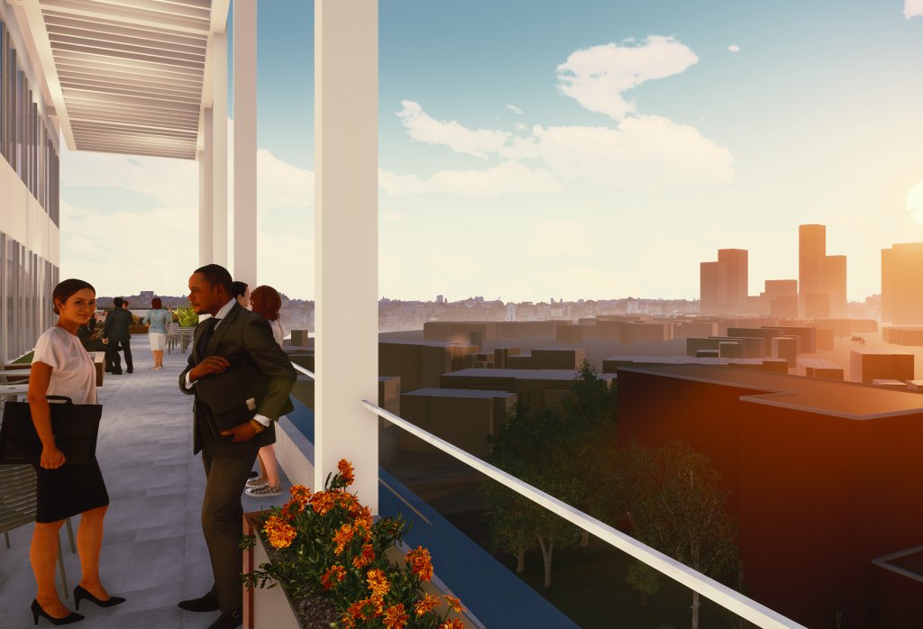 The team at Strada is pursuing a LEED Gold certification for the building. Laboratories are a little bit trickier since the tenants themselves will have a lot of high air and energy demand, but the general core and shell of the building will be designed to be LEED Gold. Solar panels installed on the roof are intended to gather enough energy to power the base core lobby lighting and general services of the building.