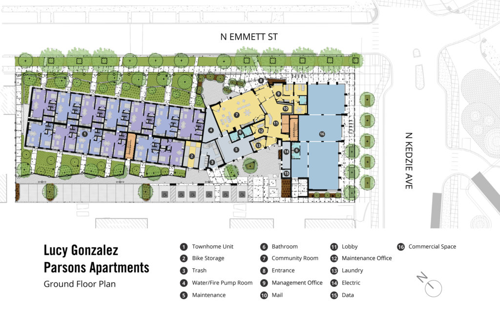 Lucy Gonzalez Parsons Apartments (LGPA) is a 100-unit affordable housing development located at 2614 N. Emmett Street next to the CTA Blue Line. It is a prime example of equitable transit-oriented development (eTOD). Bickerdike Redevelopment Corporation, a local community-based nonprofit housing developer, led the project.