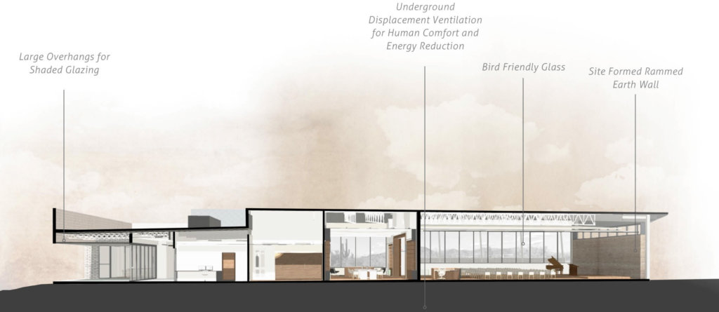 Through the buildings passive and active energy strategies, the Foundation is striving to be a Net Zero Energy and Net Zero Water Certified Building through the Living Building Challenge.