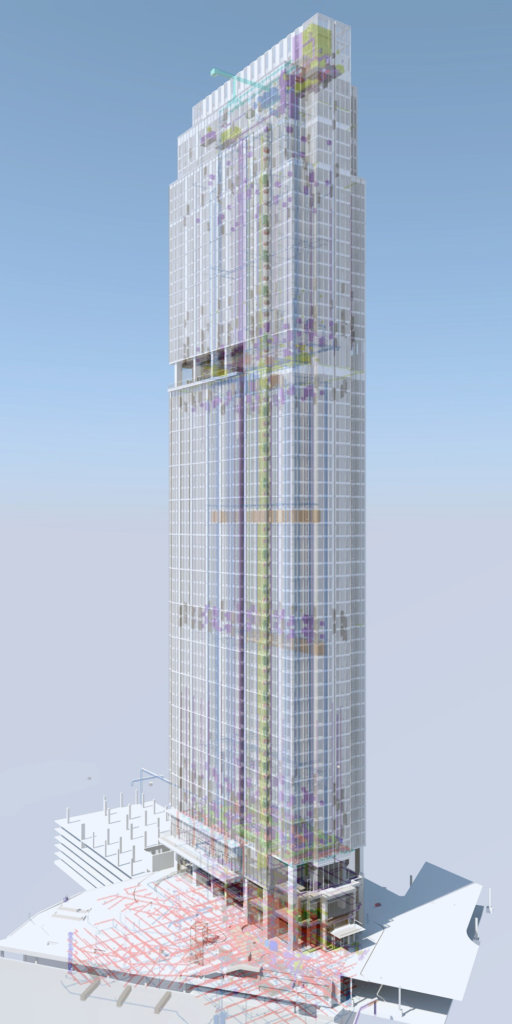 We spoke to Peter Evanich, who was an integral part of the BIM coordination aspect of WPE. Evanich did have “a heavy hand” in the coordination aspect of this project, focusing on the unit plan drawings for the tower. “I drew every single unit (there are 698 of them) and every variation of those units. I was also managing coordination of the amenities, interiors, and documents that served the interiors firm.”