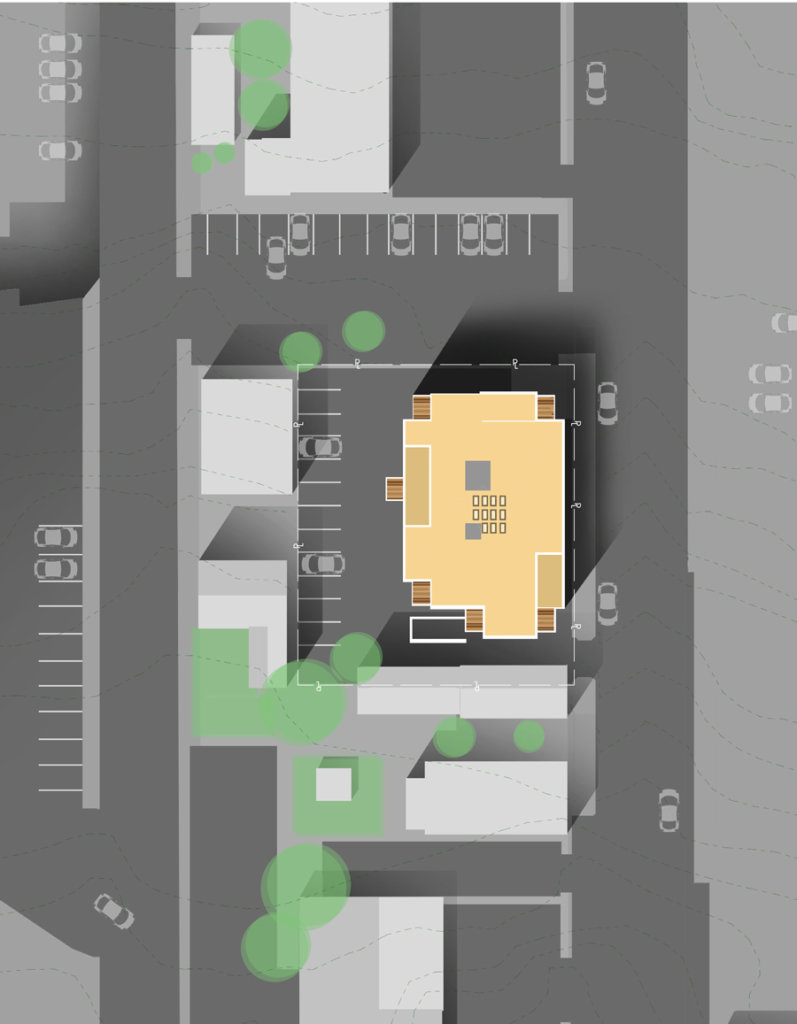 Given that Parris Terraces was situated on a small lot, modeling everything in Archicad was very important. It ended up being key to making sure that it was all going to fit, downtown, on the edge of existing 1940s residential, three-story townhouses. In addition to providing views of how the building would fit in its neighborhood, the model helped determine that the building had adequate fire truck access the fire department required.