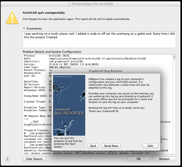 And finally, if you do get a crash send that crash report to GRAPHISOFT. If you keep hitting a bug, it’ll never get fixed if only you know about it.