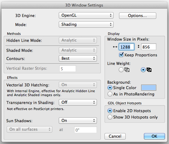 - Internal Rendering Engine vs Open GL. Please stop using the Internal Rendering Engine to explore in 3D. I know you get to see your hatch patterns. But it’s so slow. And just no. It is not going to get your clients excited. Most of the users I know that are using the Internal Rendering Engine are long time users and just never made the switch all those years ago to Open GL. This group also tends to avoid the 3D Explore mode. Don’t be like that. Use the Explore mode and use Open GL.