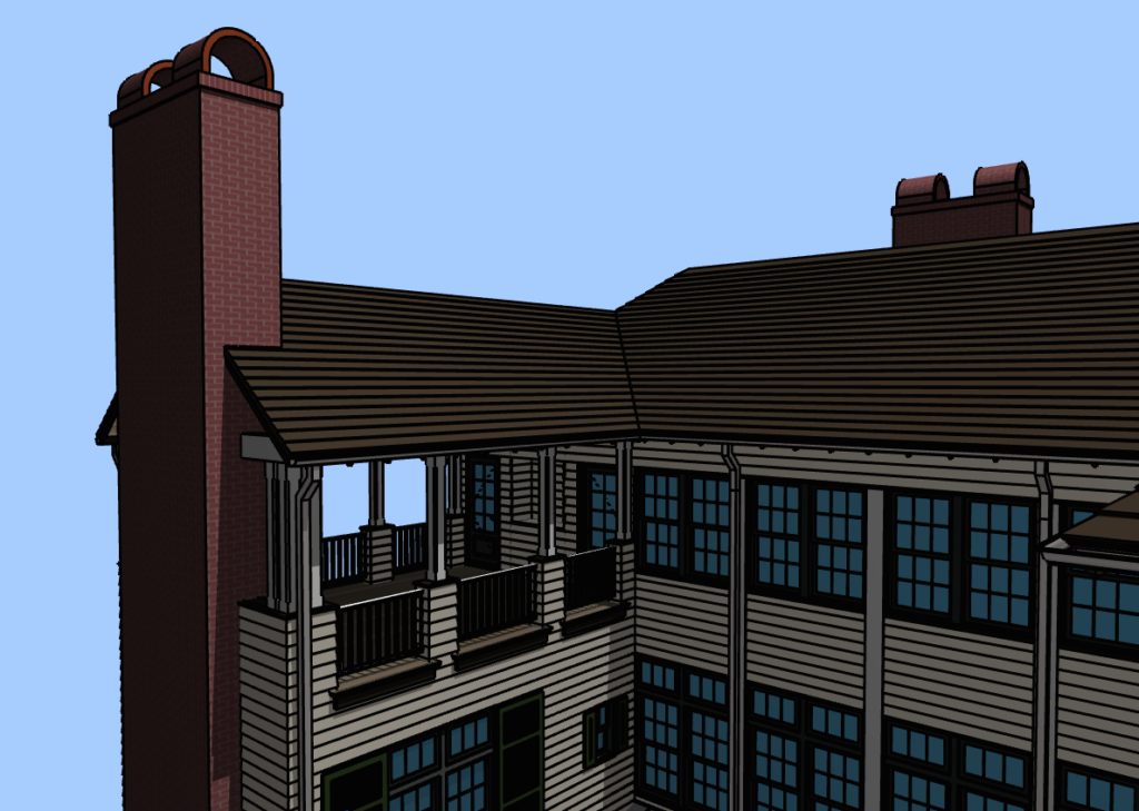 - Turn contours on or off, depending on what you prefer. Contours are probably the number one killer of Archicad 3D views. You build a beautiful model, get the right materials, and then everything is outlined in blues, pinks, greens, and reds—all the pen colors you have set up for your 2D documentation. Gross. Fix this in one of two ways. Turn off the contours or remember to change your Pen Set to an All Black Pen Set (see the earlier Pen Set articles on more about how and why to have an All Black Pen Set). Now that we’ve reached Pen Sets, I’m going to share a few examples of how much they can change the quality of the 3D window. Below is the 3D window as you probably typically see it. Contours are turned on and the Pen Set has lots of colors that help you work in 2D.
