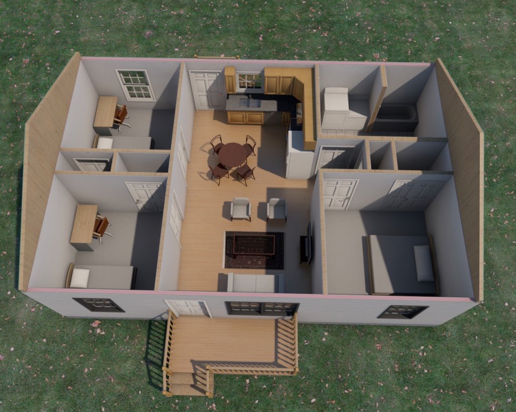 Three mature model homes fit into Benner’s scenarios. All one-story homes can be configured as a studio or one-bedroom version – with flexibility to be configured in differing layouts. Window and door units can be built separately and then brought to the wall to further automate the process.