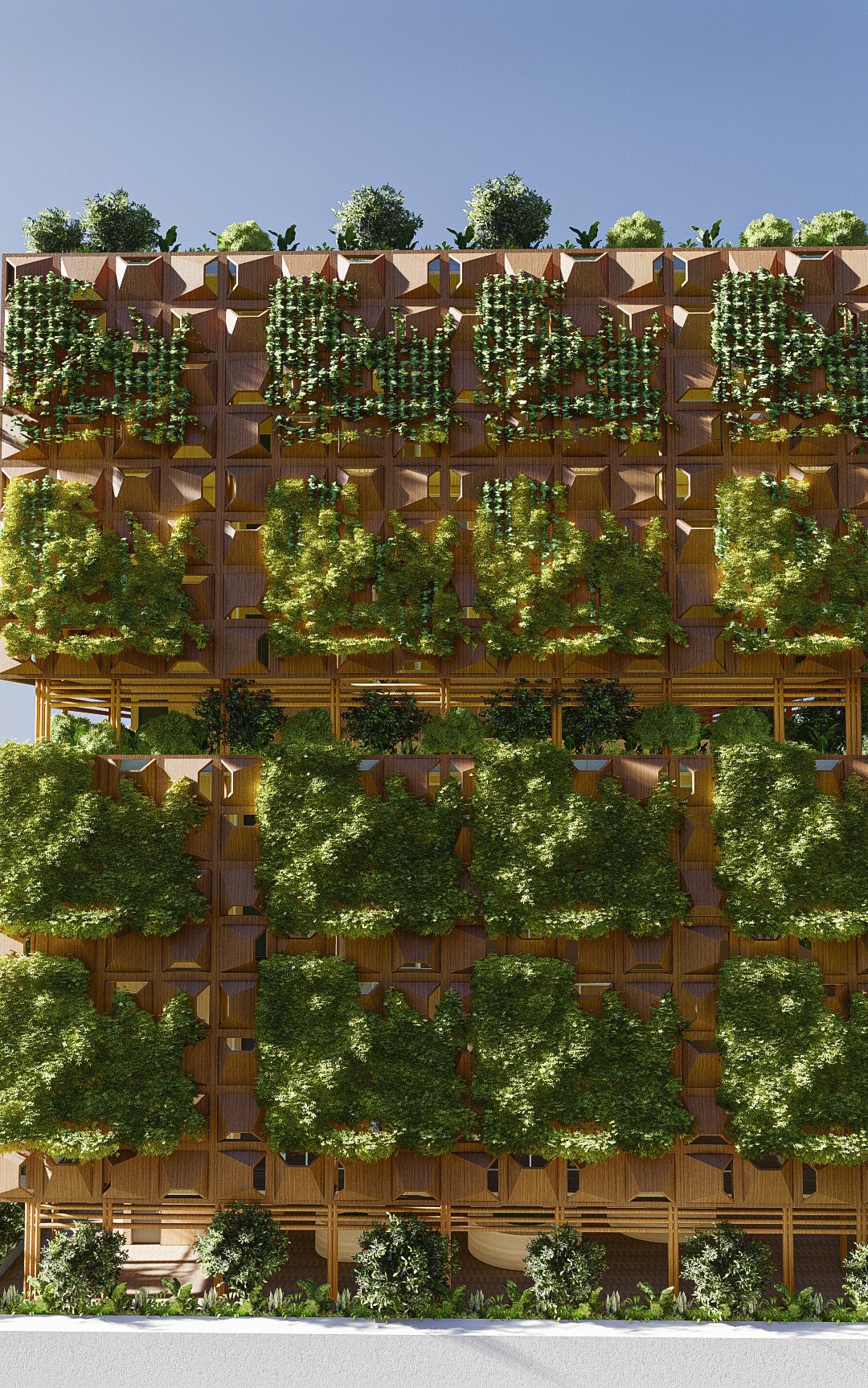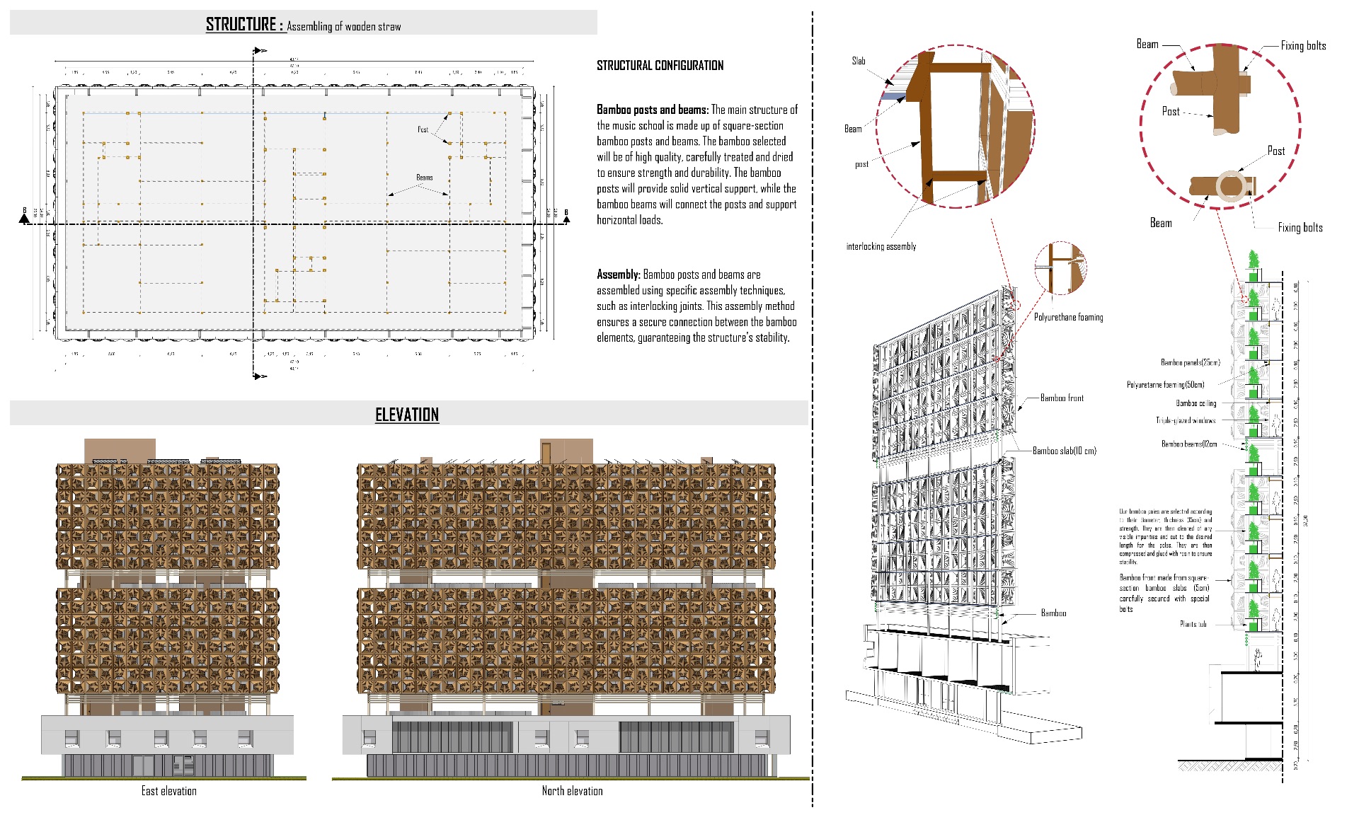 A. “My favorite aspect of this design is the rhythmic facade, which recalls the holes of a flute. This particular feature creates a strong and poetic visual connection with music, symbolizing the interaction between breath and sound. It beautifully illustrates how architecture can imitate the elements of a musical instrument, thus reinforcing the theme of the building and offering a rich sensory experience for visitors.“