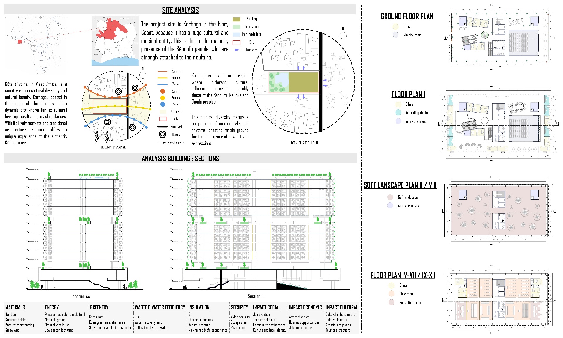 A. “The Training Center for Traditional Musicians stands as an emblematic structure where architecture and music converge harmoniously. Its facades pay tribute to musical variations, presenting a captivating visual experience. Flowing lines and elegant curves evoke the rhythm and melody of music, with architectural forms intertwining organically. This dynamic visual composition mirrors the variations and nuances of music, making the facades appear to dance to the rhythm, thus forging a profound visual connection between architectural design and musical artistry.“